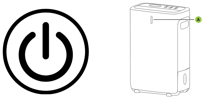 L’apparecchio viene collegato alla presa di corrente. L’allarme del dispositivo suona tre volte e l’indicatore LED (A) si illumina una volta in bianco. A questo punto è possibile premere il pulsante POWER per accendere l’apparecchio. Il display mostra il livello di umidità attuale (%) e l’indicatore LED (A) si illumina come descritto di seguito.